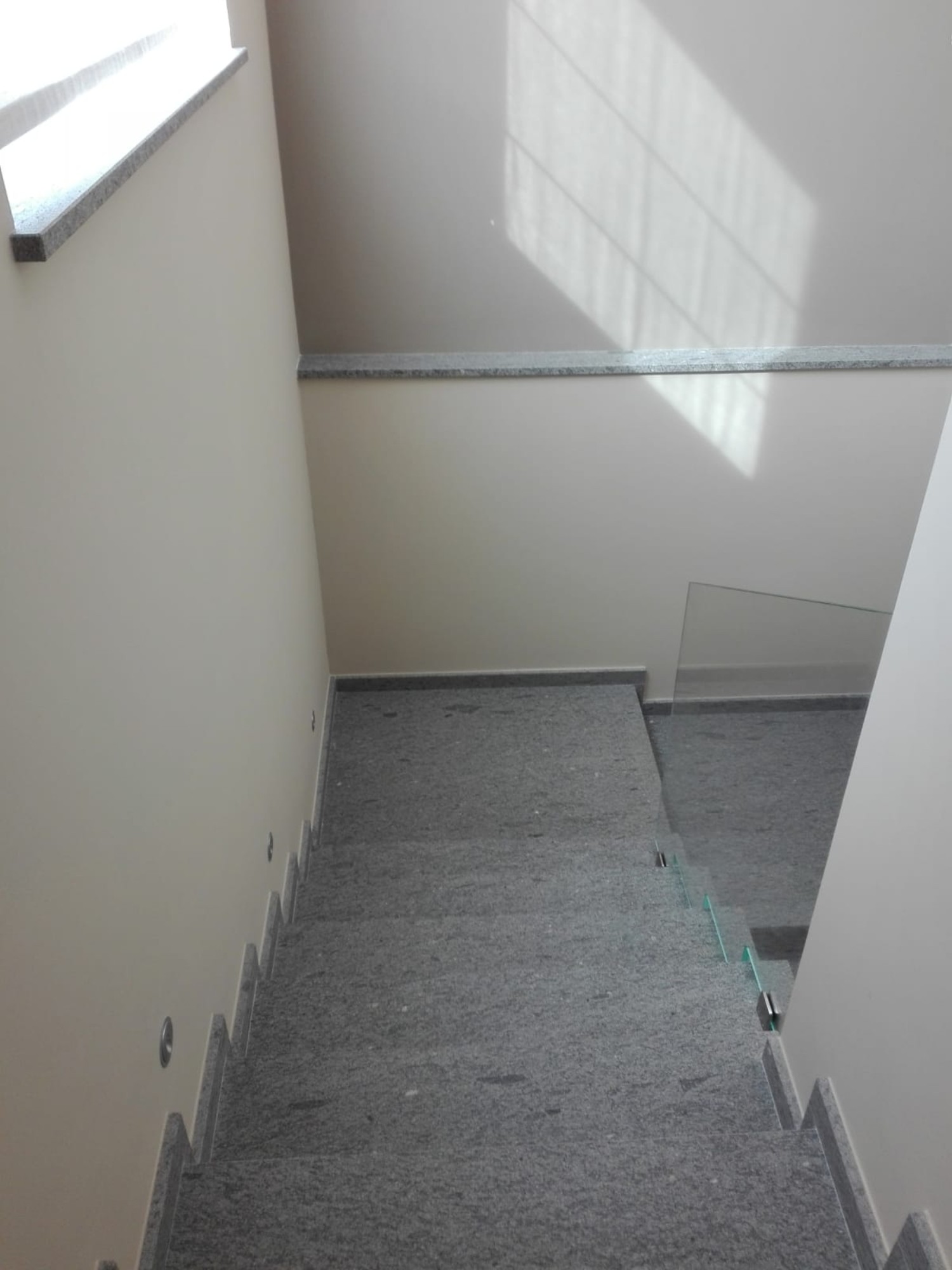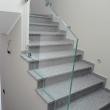 Parapetto in cristallo stratificato temperato trasparente extrachiaro con fissaggio a morsetti.